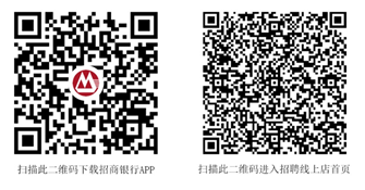 方式二:點擊鏈接 https://dwz.cn/iAfvhZf2 或掃描下方二維碼,下載招商銀行APP,點擊首頁【城市服務】—定位到【深圳】—【更多精彩】—【深圳分行招聘】投遞簡歷。持續關注線上店,了解更多招聘資訊!