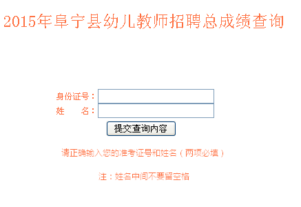 2015年阜寧縣幼兒教師招聘總成績查詢