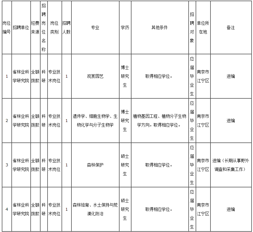 江蘇省林業(yè)局直屬事業(yè)單位2016年公開招聘工作人員崗位表