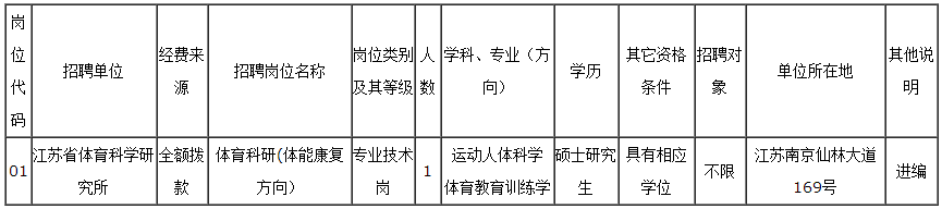 江蘇省體育科學研究所公開招聘工作人員崗位表