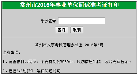 2016年常州市事業單位面試準考證打印入口已開通,點擊進入>>>