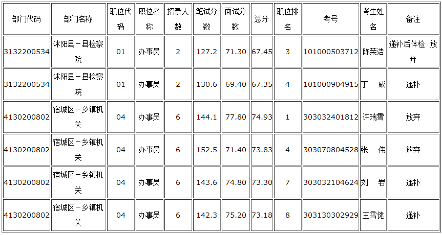 按照《宿遷市2016年考試錄用公務員簡章》規定,現將2016年宿遷市公務員考錄遞補體檢人員名單予以公告。