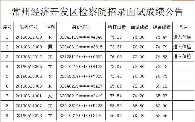 常州經濟開發區檢察院招錄面試成績公告已發布,點擊下載: