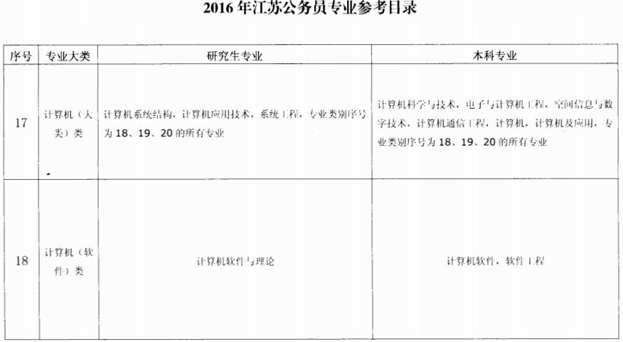 注:報(bào)名人須為2017年應(yīng)屆畢業(yè)生,取得相應(yīng)學(xué)位,專業(yè)類別和具體專業(yè)名稱參見互聯(lián)網(wǎng):《2016年江蘇公務(wù)員專業(yè)參考目錄》