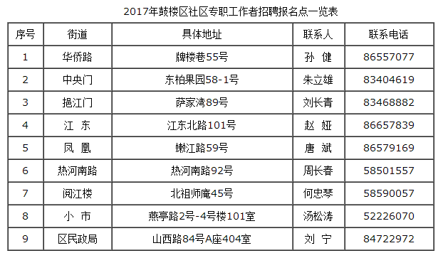 招聘社區專職工作者62名,從事社區一線服務工作,納入社區專職工作者管理,享受鼓樓區社區專職工作者待遇。