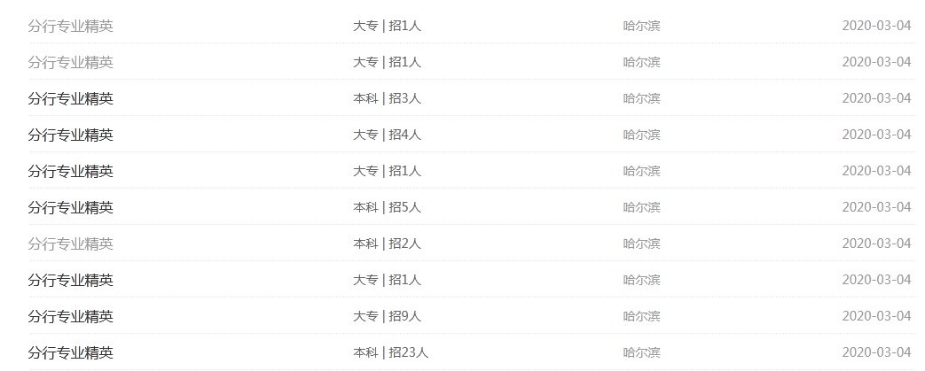 5.工作地點:各分行所在地,其中,農墾分行工作地點在建三江地區。