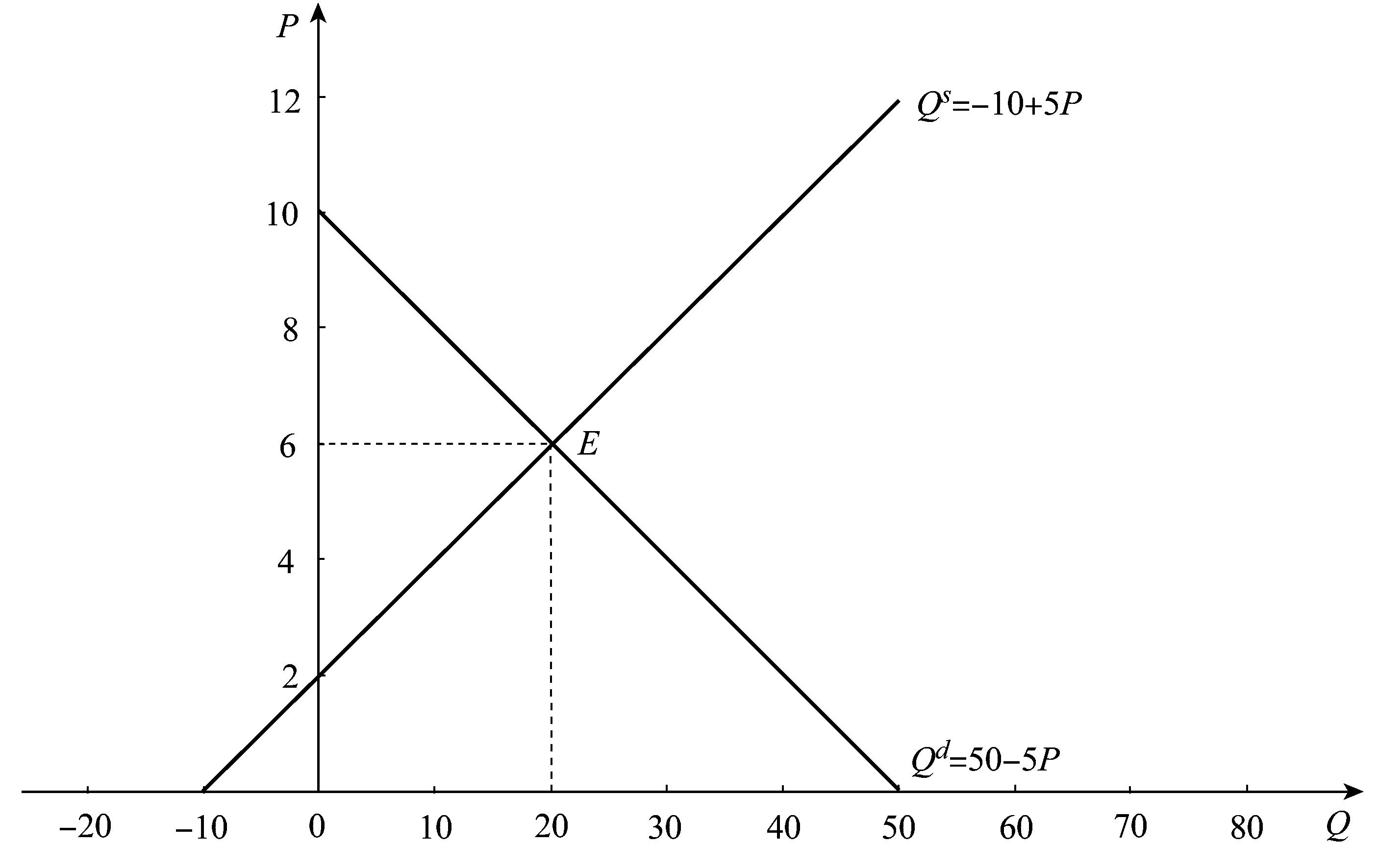 所以,均衡價格和均衡數量分別為Pe=6,Qe=20。如圖2—1所示。