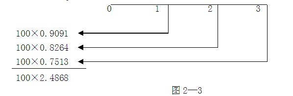 p = 1OO×(1+10%)-1 + 1OO×(1+10%)-2 + 1OO×(1+10%)-3