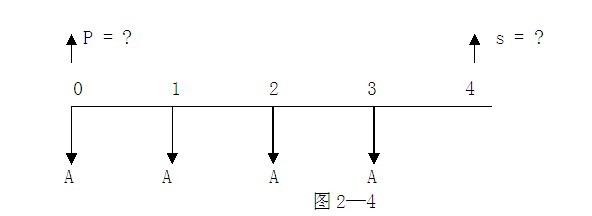 [例2—9] 某人出國3年,請你代付房租,每年租金100元,設銀行存款利率l0%,他應當現在給你在銀行存入多少錢?