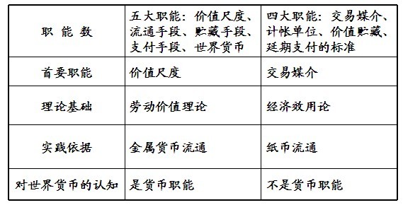 兩種貨幣職能理論的比較