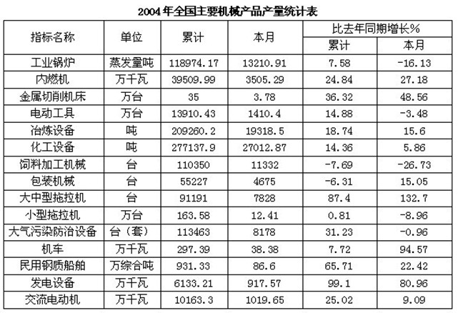 下列對2004年1~12月份主要機械產品產量描述不正確的是(       )。