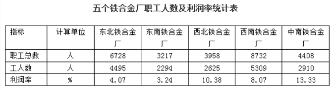 西北鐵合金廠職工總人數比西南鐵合金廠職工總人數少多少?