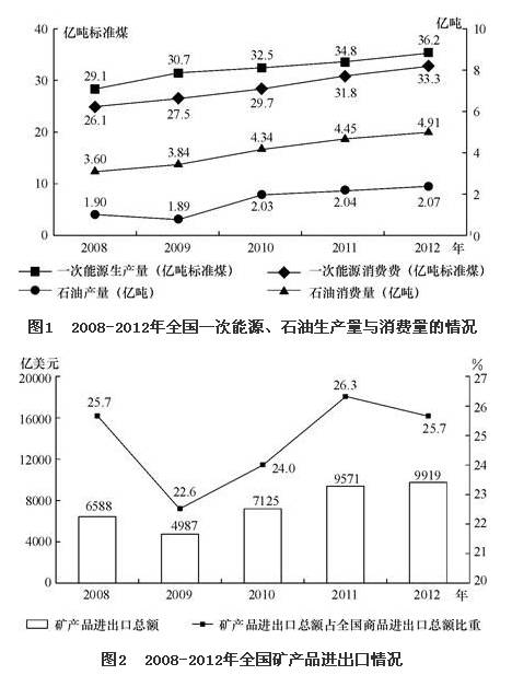 5.關于2009-2012年全國礦產品貿易和能源生產、消費,能夠從上述資料中推出的是: